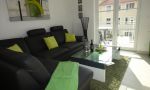 Ihre Ferienwohnung verfügt über ein Wohn- und zwei Schlafzimmer. Im Wohnbereich befindet sich eine große Eck-Ledercouch sowie ein großer Flachbildfernseher.