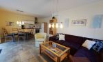 Diese schöne, geräumige 3-Zimmer-Ferienwohnung im Erdgeschoss verfügt über ein Wohnzimmer mit Eckcouch und Flachbild-Fernseher. Vom Wohnzimmer können Sie auf die sonnige Terrasse treten und dort Ihre Mahlzeiten genießen. Die offene, ins Wohnzimmer integrierte Küche ist voll ausgestattet und verfügt über einen Ess-Tisch für 4 Personen. Das erste Schlafzimmer ist mit einem Kleiderschrank und einem Doppelbett mit 2 Matratzen (je 90 cm x 200 cm) ausgestattet; das Zweite vergügt über zwei Einzelbetten (auch je 90 cm x 200 cm) und eine Kommode. Im Bad finden Sie eine ebenerdige Dusche und eine Waschmaschine. Ihre mitgebrachten Fahrräder können Sie im Fahrradschuppen abstellen. Ein PKW-Stellplatz befindet sich direkt vor dem Haus.
